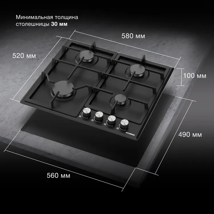 Газовая варочная панель Hyundai HHG 6432 BK