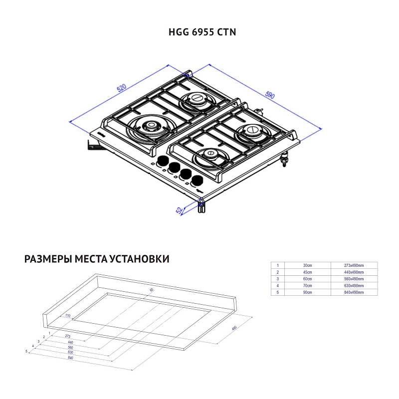 Газовая варочная панель Korting HGG 6955 CTN