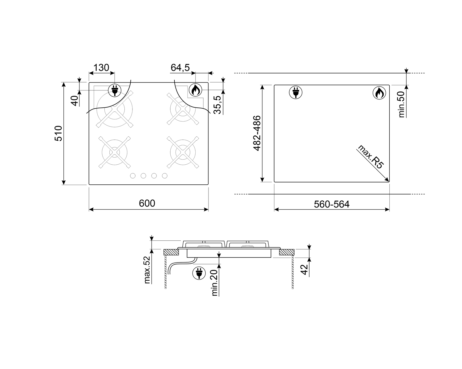Газовая варочная панель Smeg PV364N