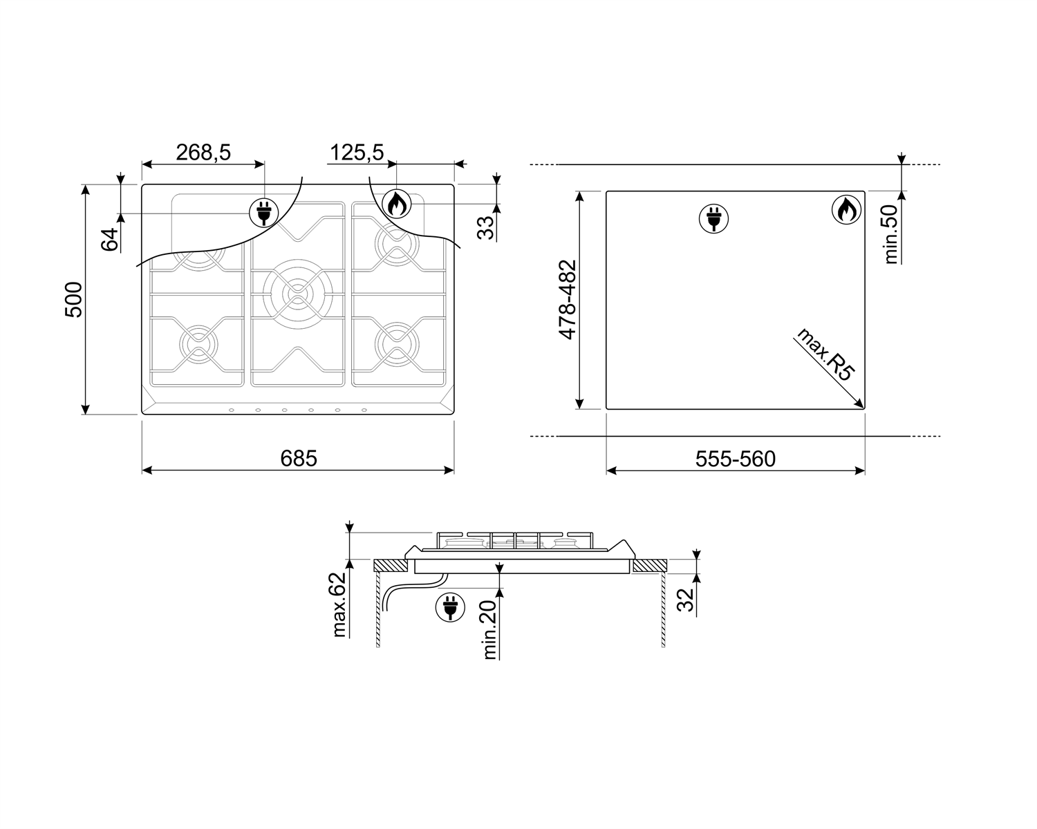 Газовая варочная панель Smeg SRV876POGH