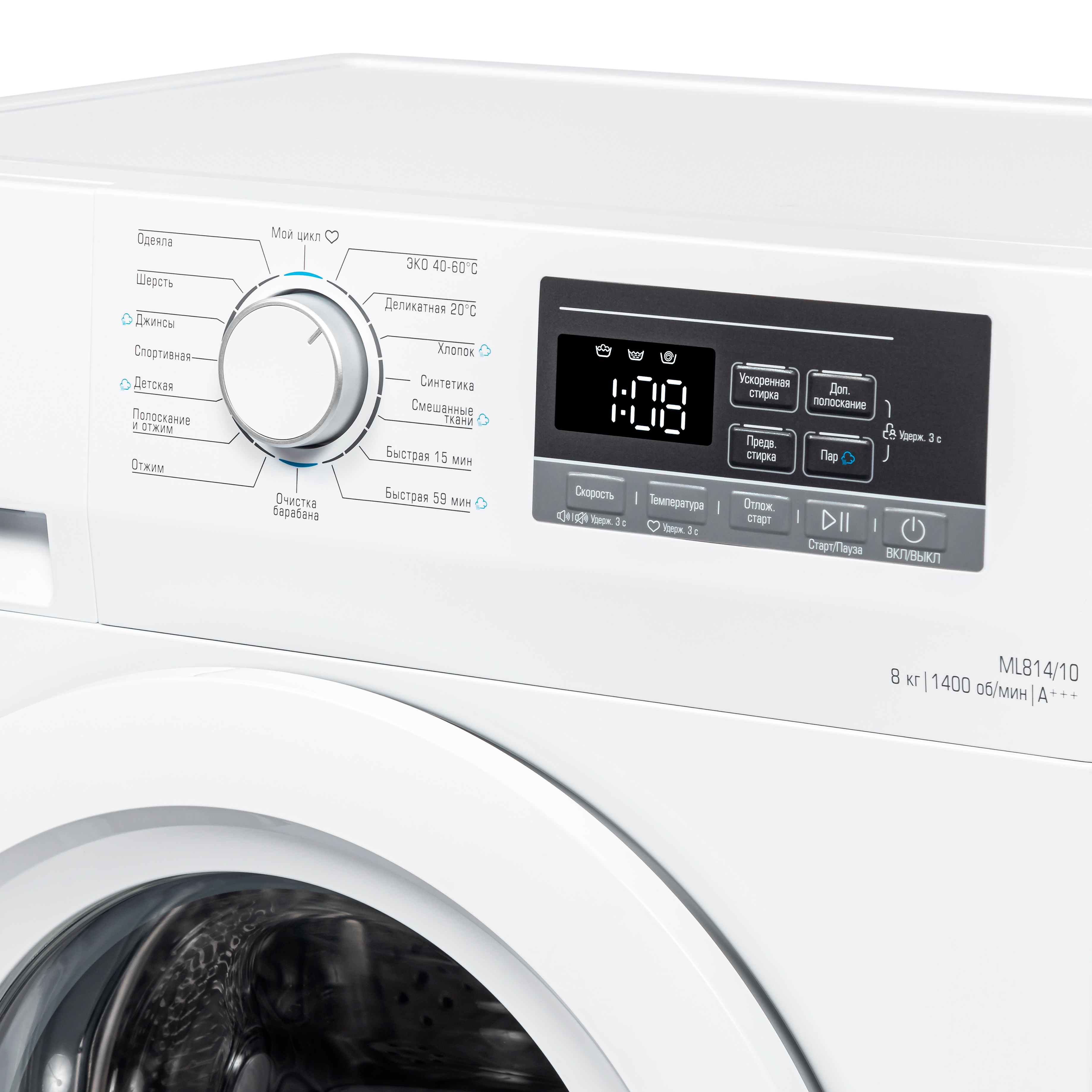 хлопок, деликатная 20 ?c, синтетика, смешанные ткани, шерсть, быстрая 59/15 мин, отжим, полоскание и отжим, мой цикл, детская, эко 40-60 ?c, джинсы, спортивная, одеяла,